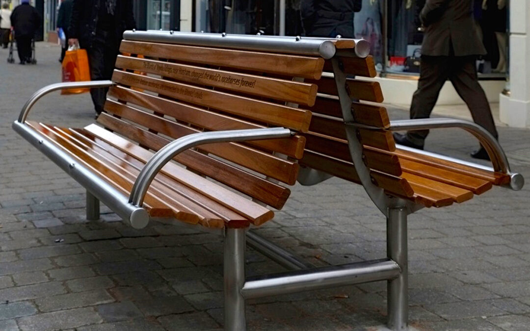 Made from 316 stainless steel and Iroko. From our Shoreline street furniture range.